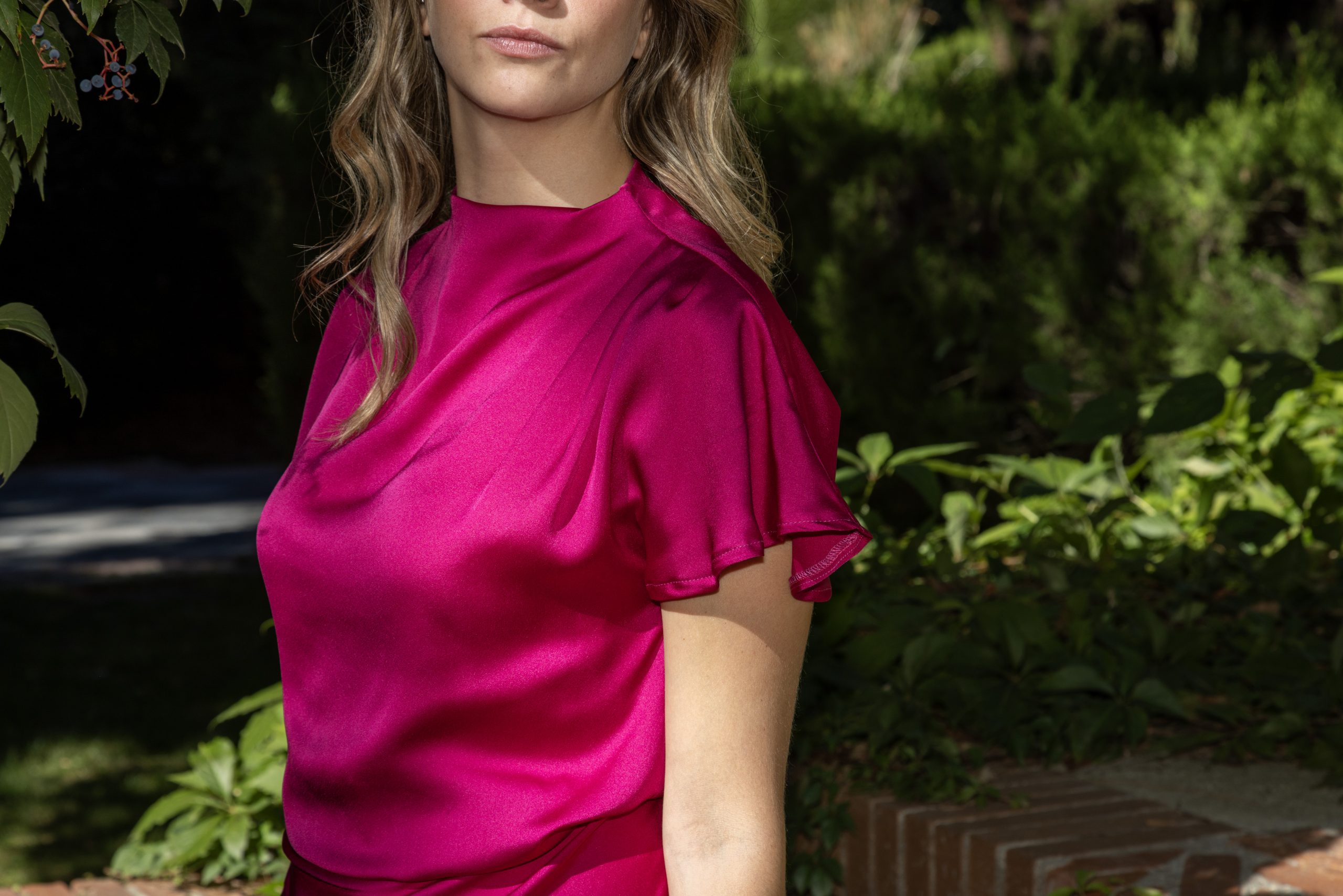 Conjunto de top más falda midi. Confeccionada en seda con forro, esta falda cuenta con una cremallera lateral y un cierre trasero superior con botón para el top que asegura un ajuste perfecto. Hecho a mano en España, en compañía de pequeños comerciantes locales.