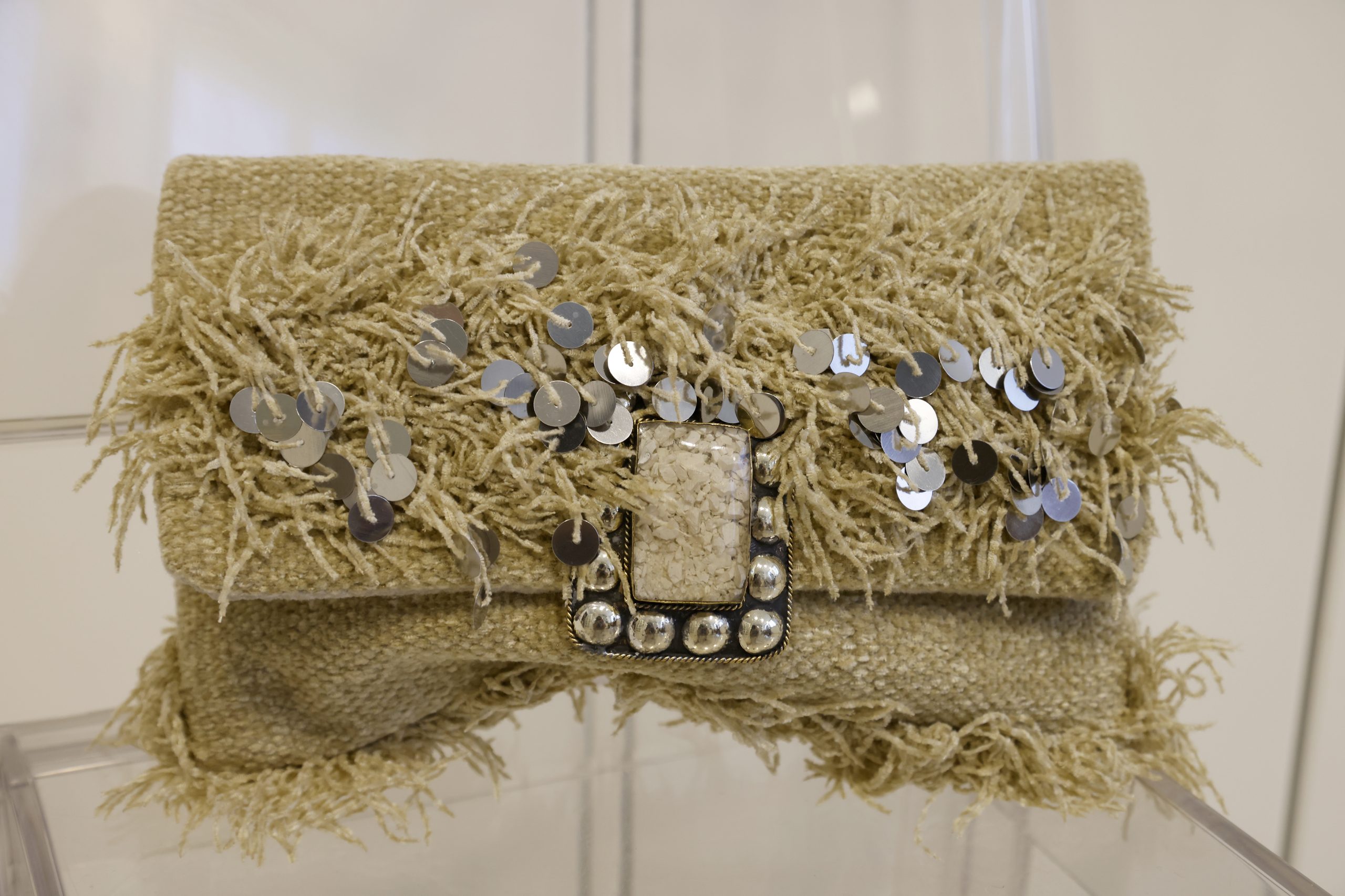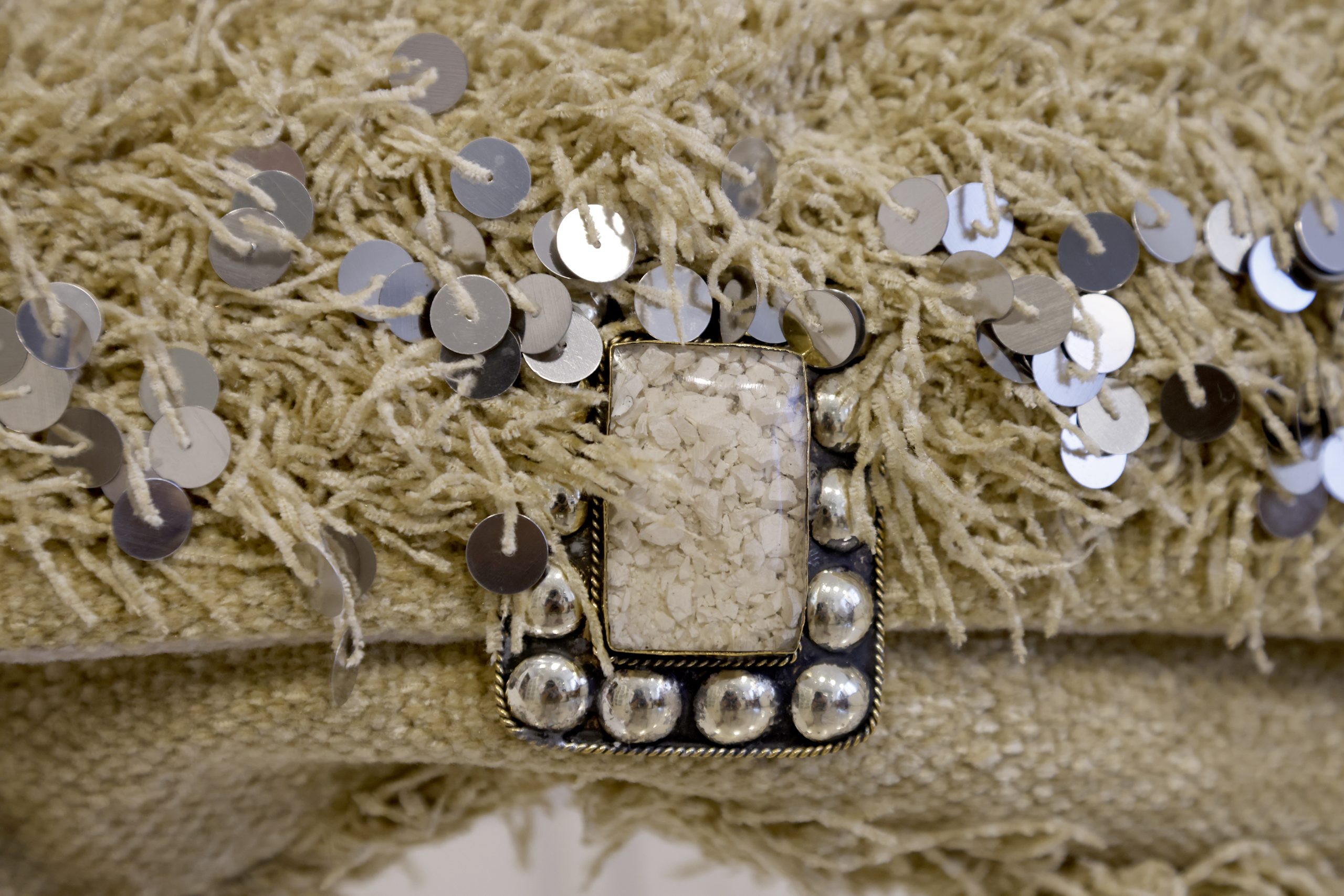 El bolso Handira crudo es una pieza única y exclusiva hecha a mano por las talentosas mujeres de la tribu bereber Beni Ouarain. Este impresionante clutch está confeccionado con una manta tradicional de Handira, que las novias suelen lucir sobre sus hombros el día de su boda. El diseño incluye lana, lino y detalles de espejos, junto con una cadena extraíble y un cierre de joya étnica redonda plateada y verde. Con este bolso, no solo llevarás contigo un pedazo de la rica cultura bereber, sino que también agregarás un toque de elegancia y exclusividad a tu estilo.