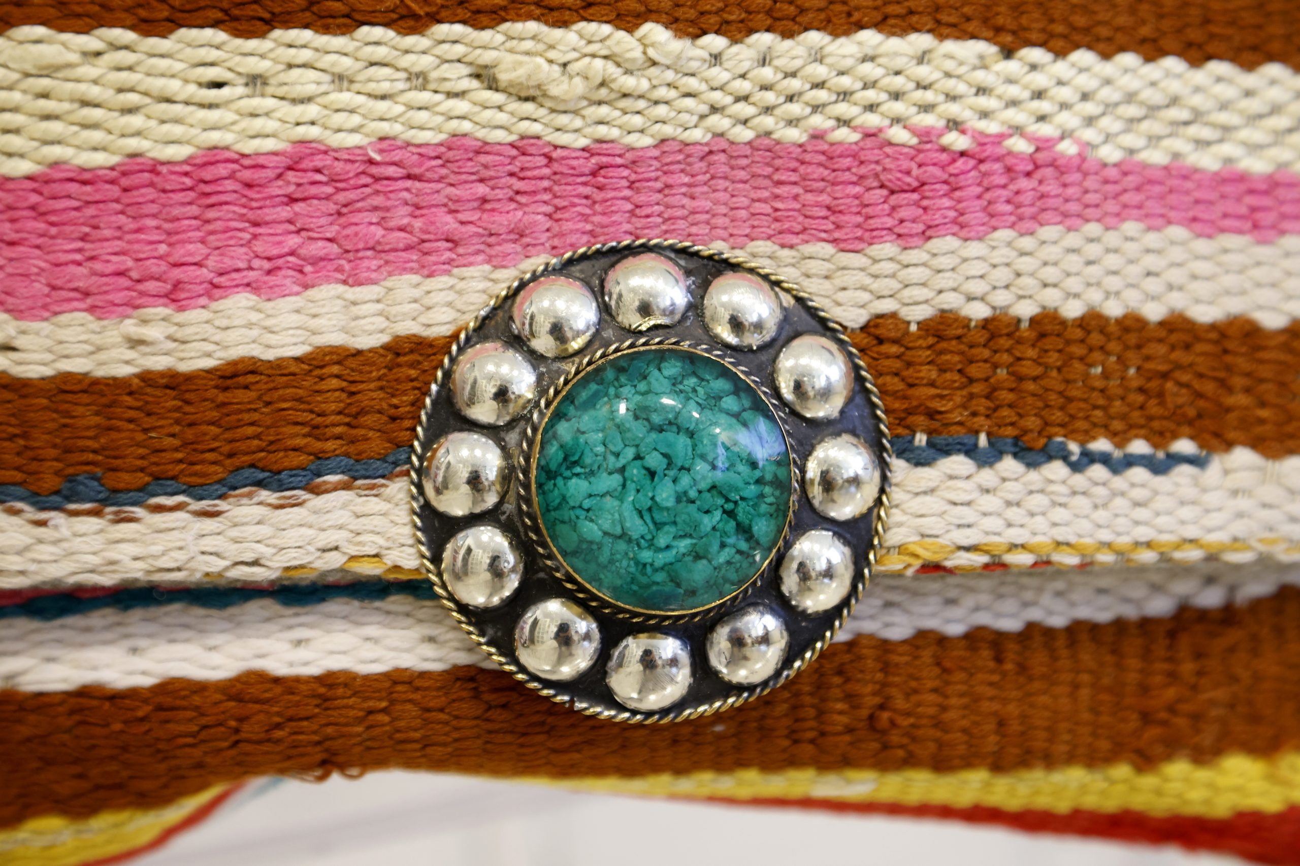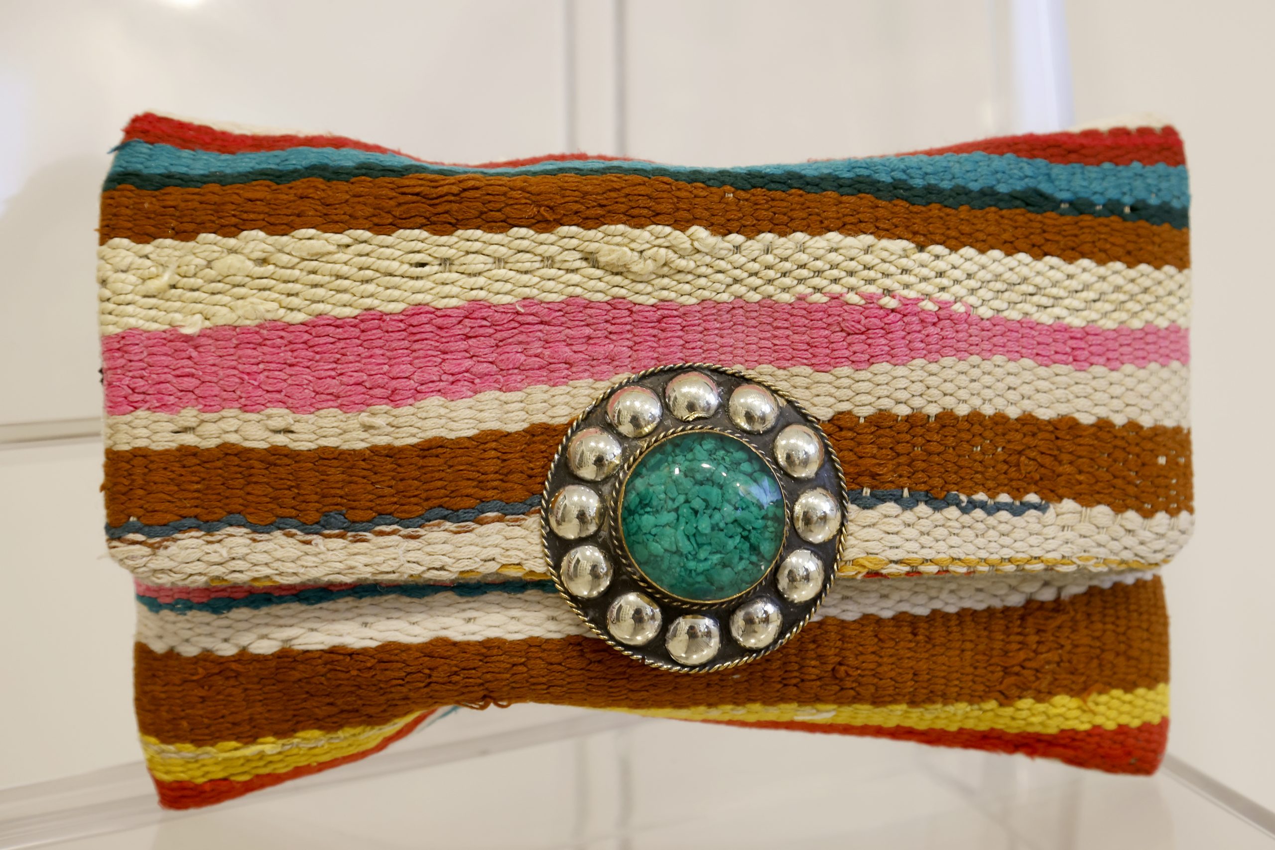 El bolso Kilim Rayas es una pieza única hecha a mano con exquisitos Kilims, que le brindan un diseño exclusivo y auténtico. Con un cierre joya étnica redonda plateada y verde que añade un toque de elegancia, este bolso destaca por su exterior de 100% lana de calidad. Proveniente de la artesanía Bereber, cada pieza es única en su estilo y con una cadena extraíble que brinda versatilidad en su uso. Con el bolso kilim rayas, llevarás contigo no solo un accesorio de moda, sino también una pieza de arte y tradición hecha a mano con dedicación y cuidado.
