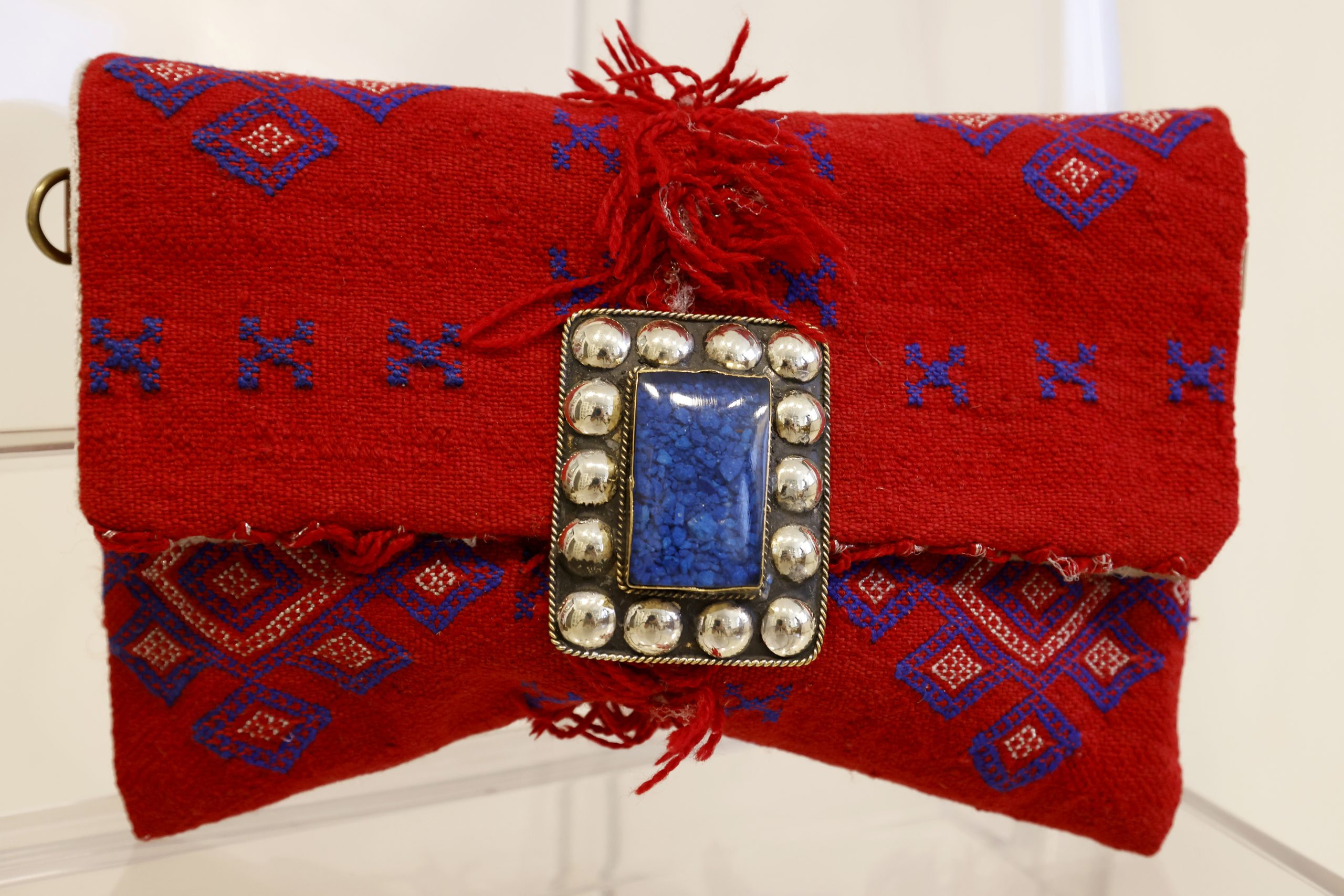 El bolso Kilim rombos rojos es una pieza única hecha a mano con exquisitos Kilims, que le brindan un diseño exclusivo y auténtico. Con un cierre joya étnica cuadrada plateada y azul que añade un toque de elegancia. Este bolso destaca por su exterior de 100% lana de calidad. Proveniente de la artesanía Bereber, cada pieza es única en su estilo y con una cadena extraíble que brinda versatilidad en su uso. Con el bolso Kilim rombos, llevarás contigo no solo un accesorio de moda, sino también una pieza de arte y tradición hecha a mano con dedicación y cuidado.